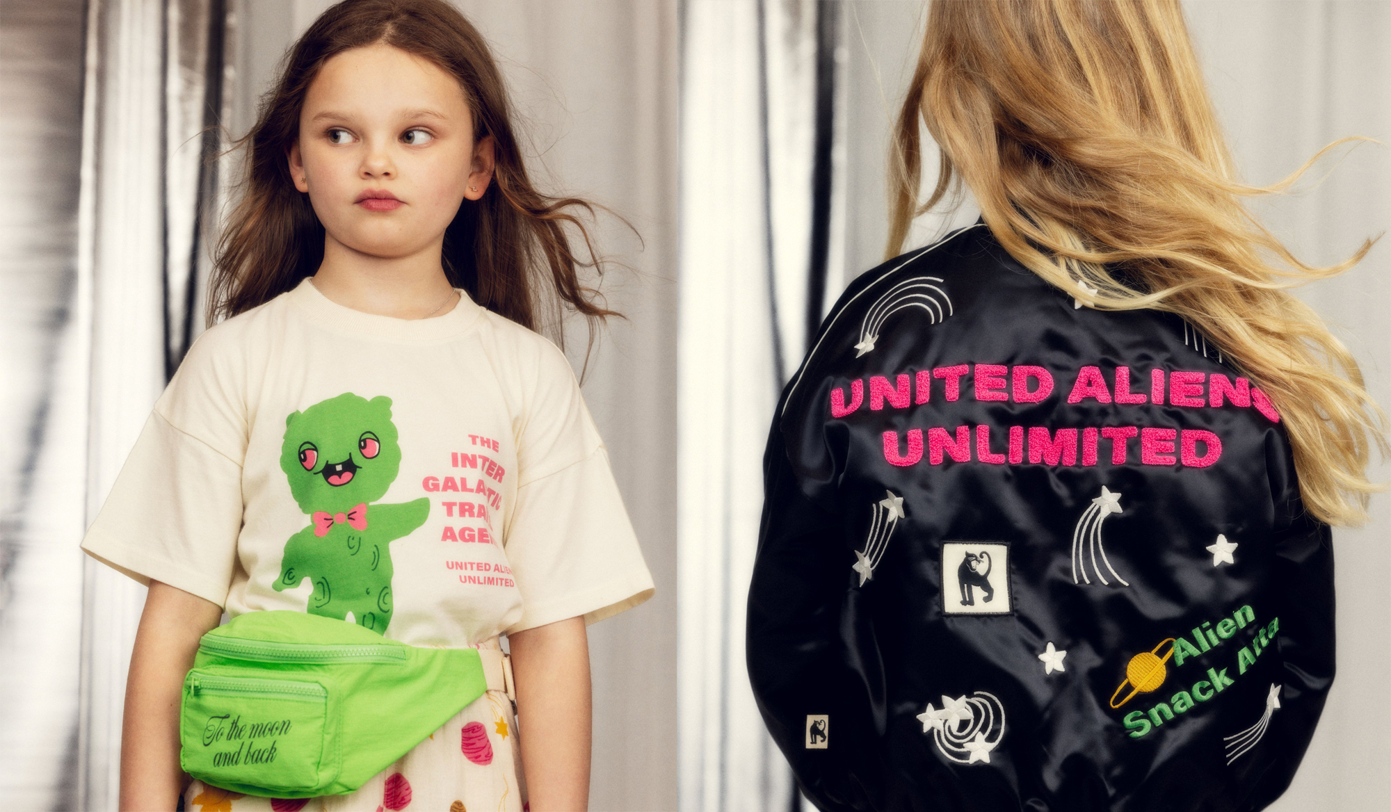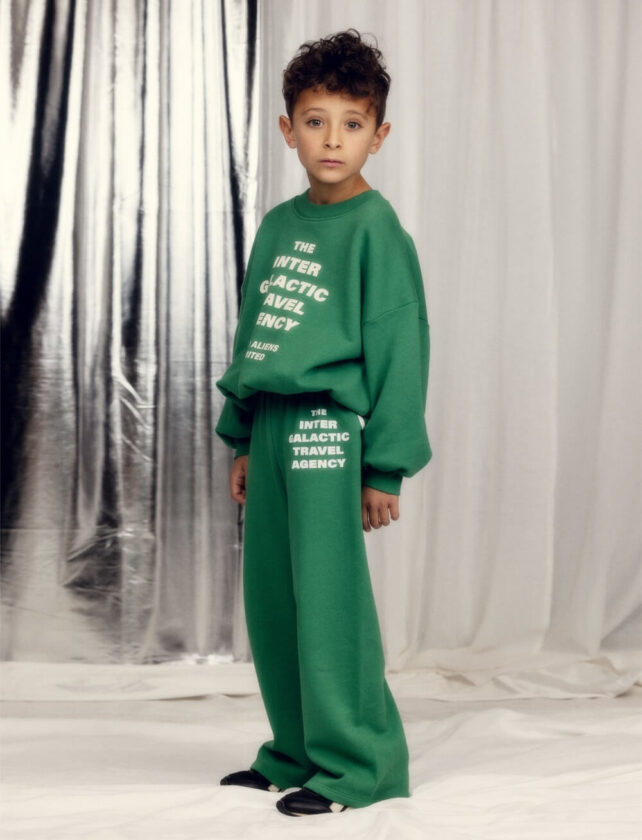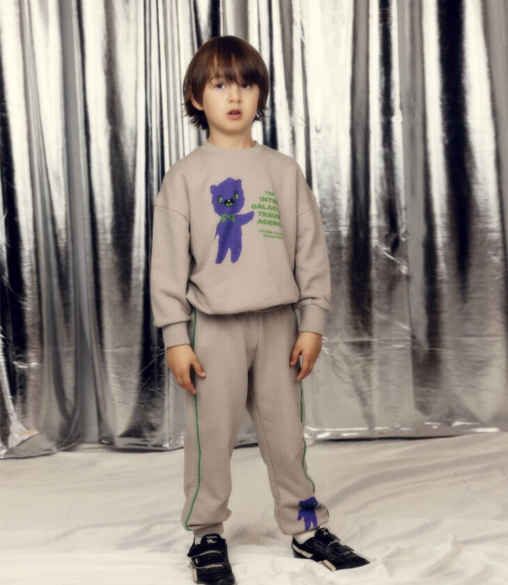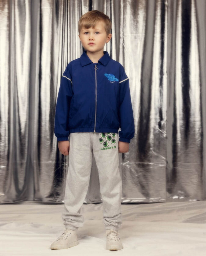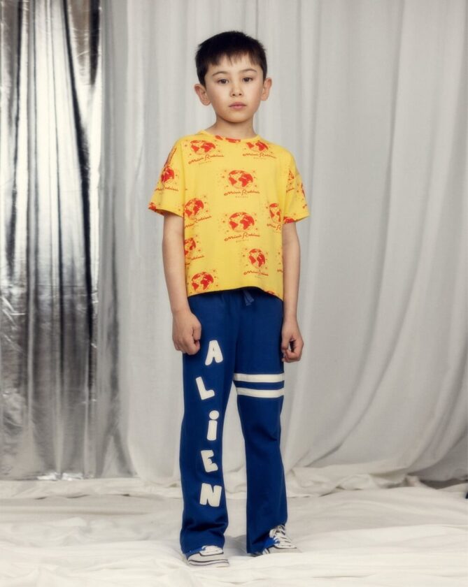 ユーモアあふれるグラフィックと、子どもたちの想像力を掻き立てるクリエイションで知られる、スウェーデン発のキッズブランド〈Mini Rodini〉。2026年春夏コレクションのテーマは、まだ名前のない惑星。銀河を越えて出会った仲間たちと過ごす、遠くてどこか身近な宇宙の世界が広がる。架空のフットボールクラブや、宇宙を旅するクマたち、エイリアンたち。そんなモチーフをのせた、遊び心のあるラインナップが揃う。