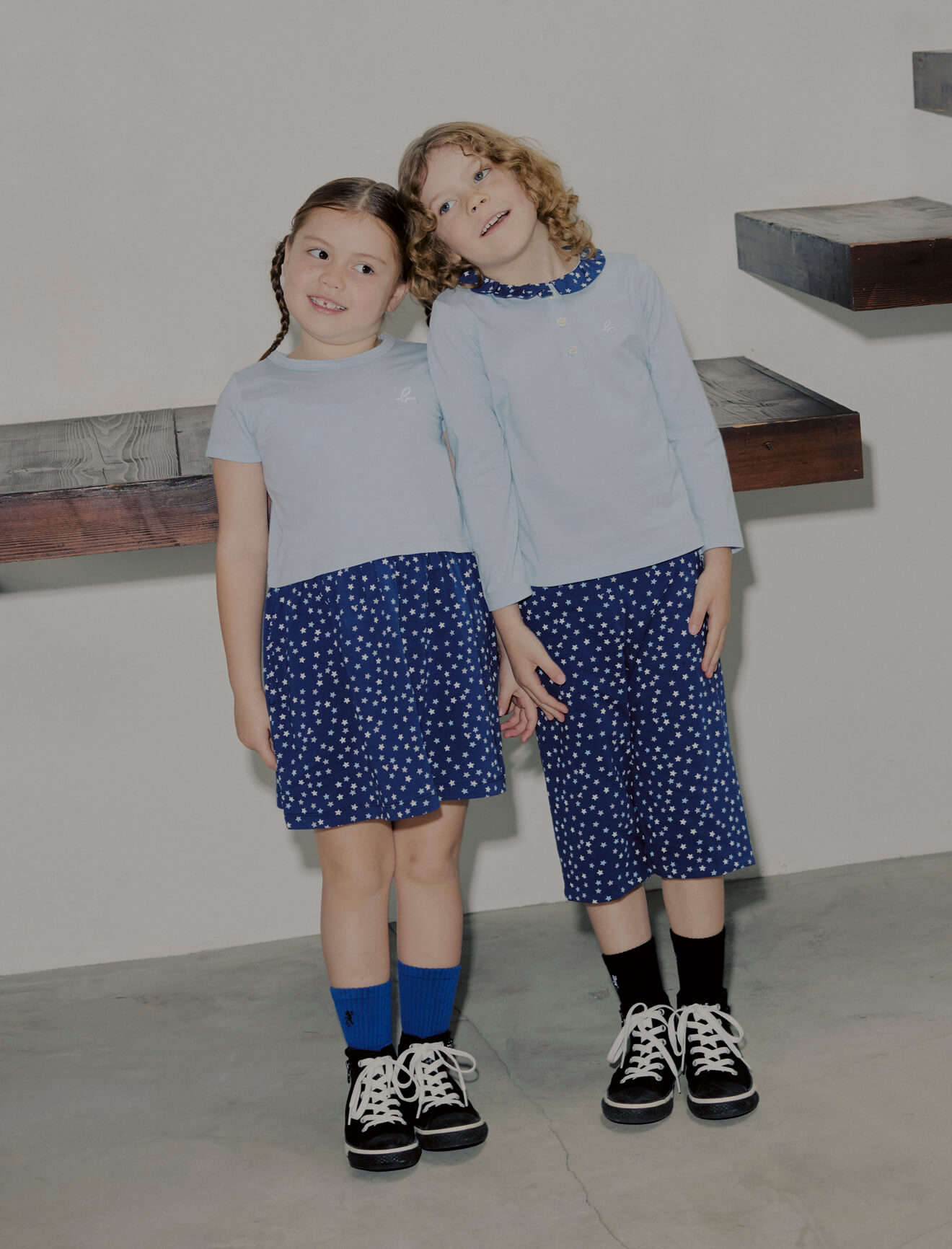Girl: ワンピース¥19,800 中に着たブラウス¥9,350 ソックス¥1,540(以上すべてagnès b./アニエスベー)シューズ スタイリスト私物
