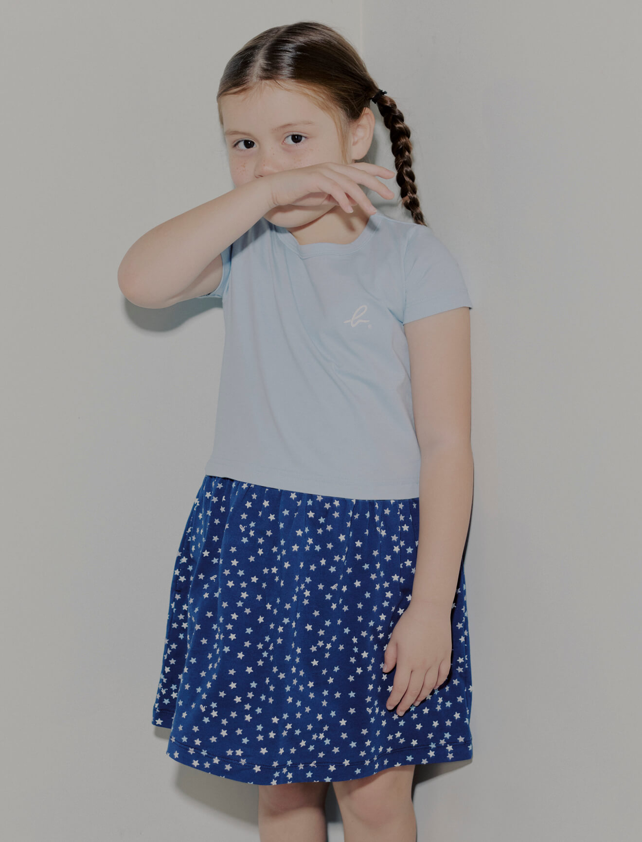 Tシャツ¥6,050 スカート¥9,020 ソックス¥13,200 シューズ¥13,200(以上すべてagnès b./アニエスベー)