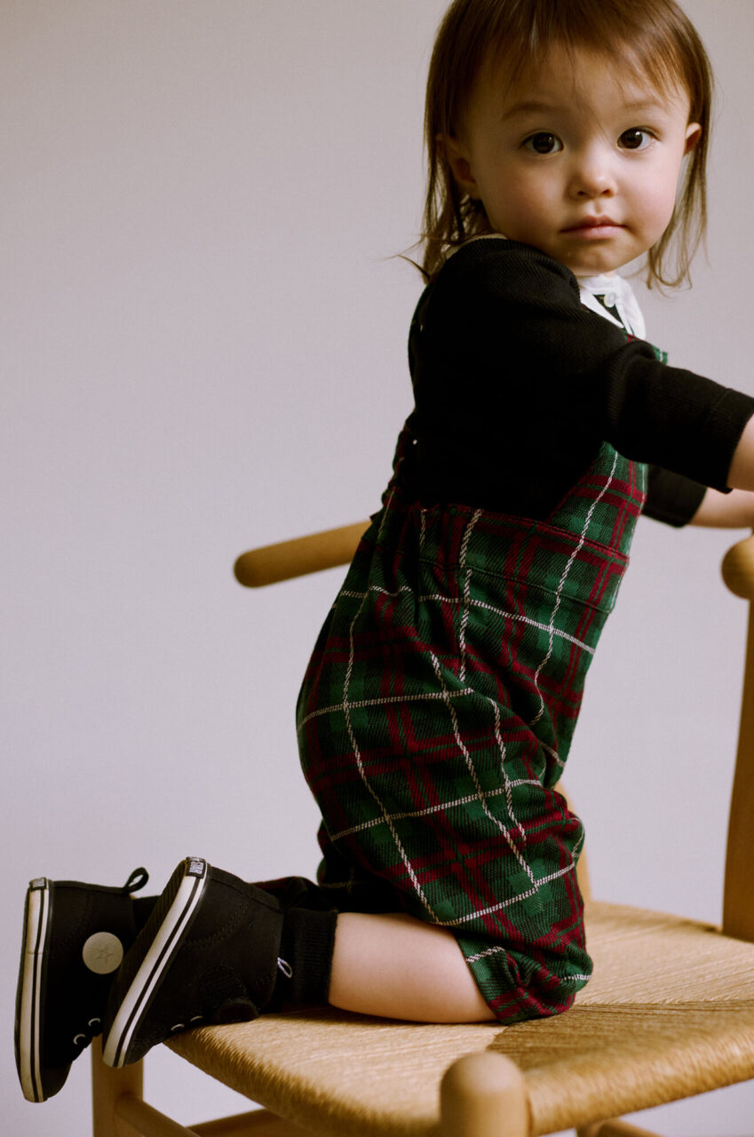 Left: サロペット¥19,250 中に着たロンパース¥12,100 シューズ¥10,780(以上すべてagnès b./アニエスベー)ソックス スタイリスト私物