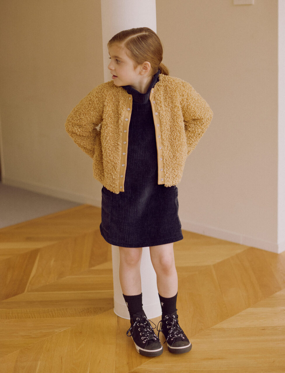 Right Girl: ワンピース¥18,150 ニット¥17,600 中に着たシャツ¥8,800(以上すべてagnès b./アニエスベー)ソックス シューズ ともにスタイリスト私物