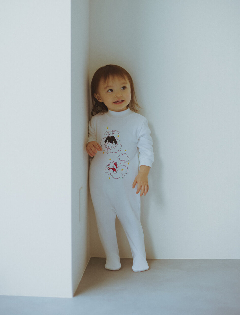 Left: サロペット¥19,250 中に着たロンパース¥12,100 シューズ¥10,780(以上すべてagnès b./アニエスベー)ソックス スタイリスト私物