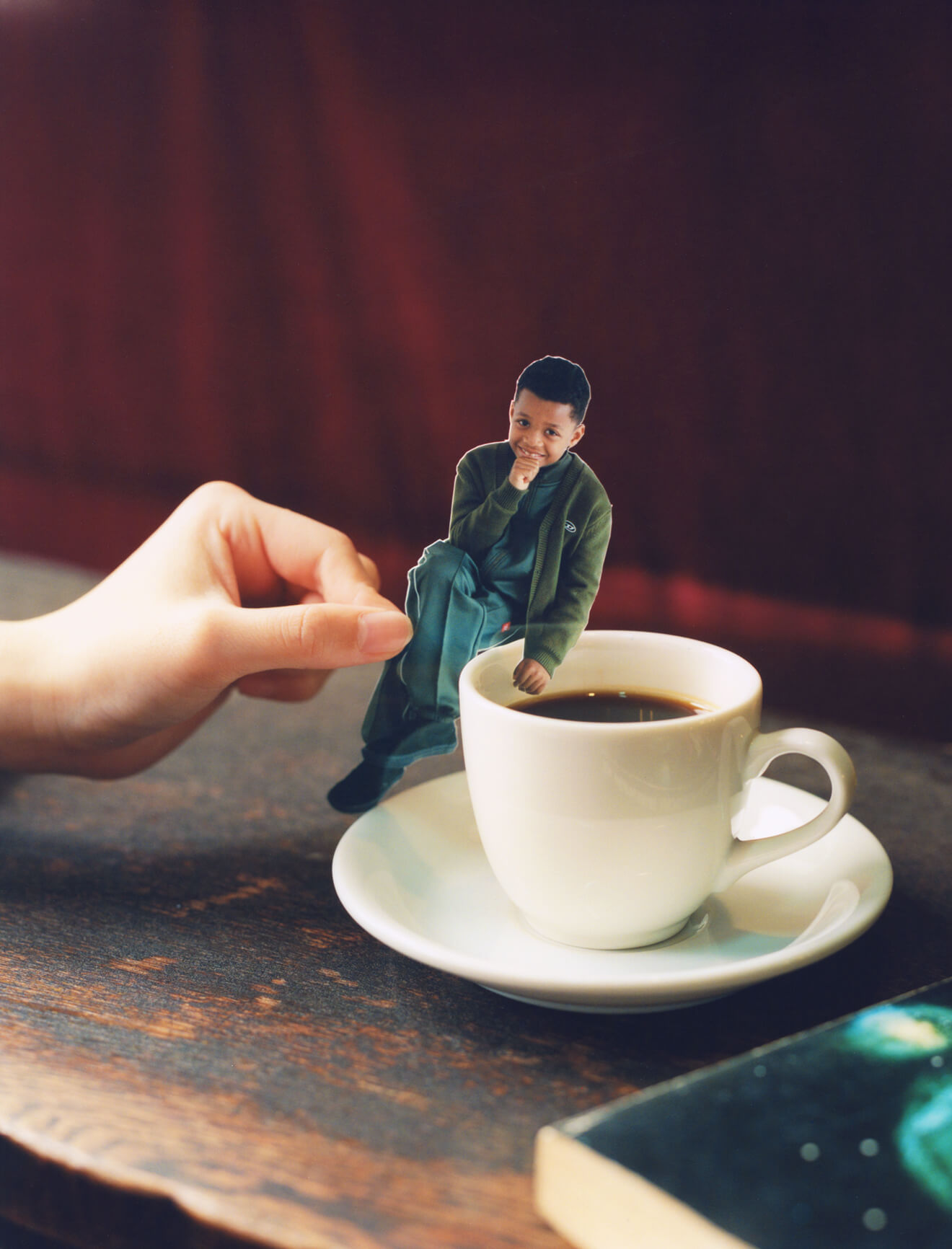 喫茶店でブラックコーヒーを飲みながら読書にふける。髪を整えてお化粧をして、理想の私になる。どれも大きくなるまでは我慢だけど、子どもの憧れと想像は日々膨らむばかり。「ブレイブ キッド」の服でおしゃれをしながら、いつかなるかっこいい大人の姿を夢見て。