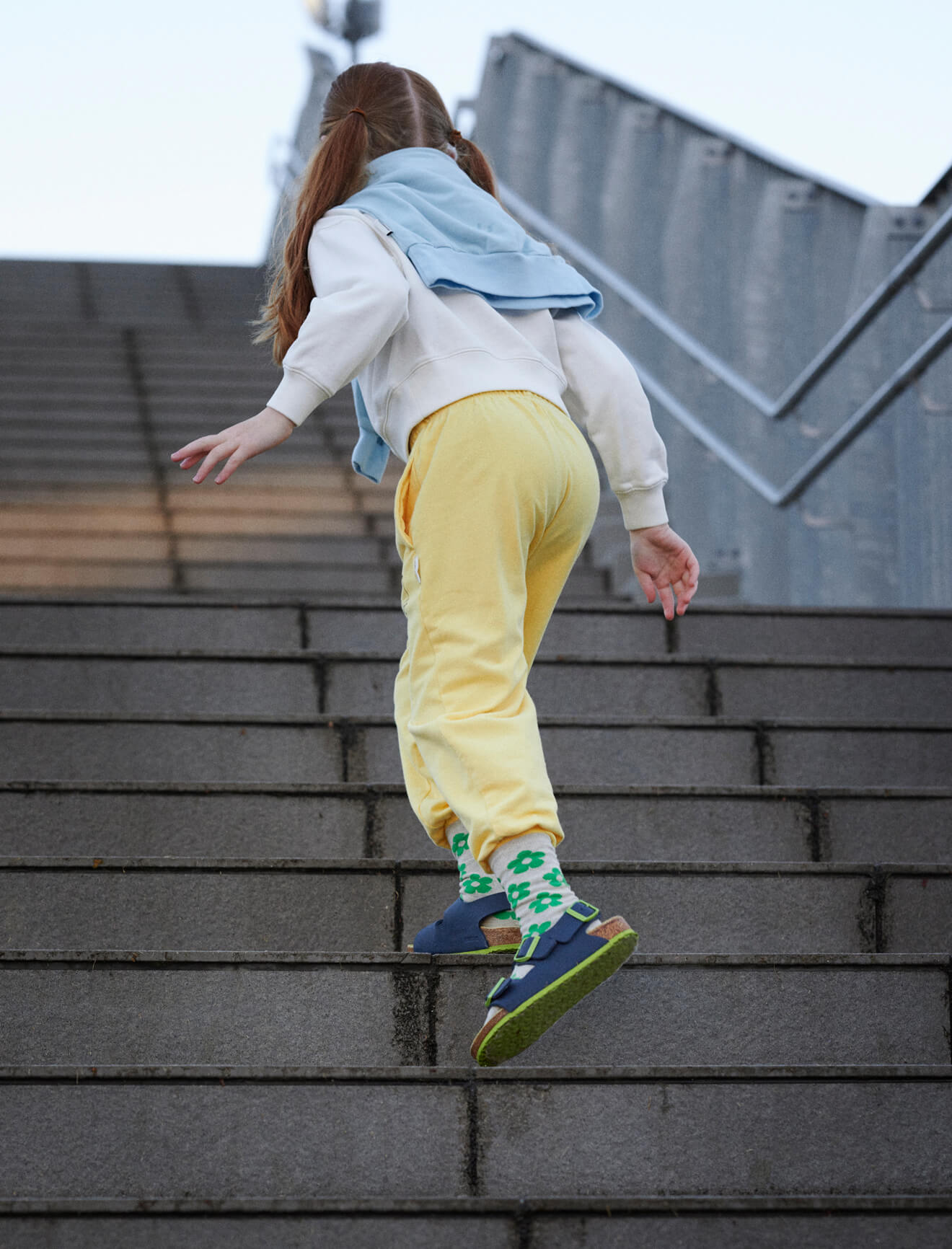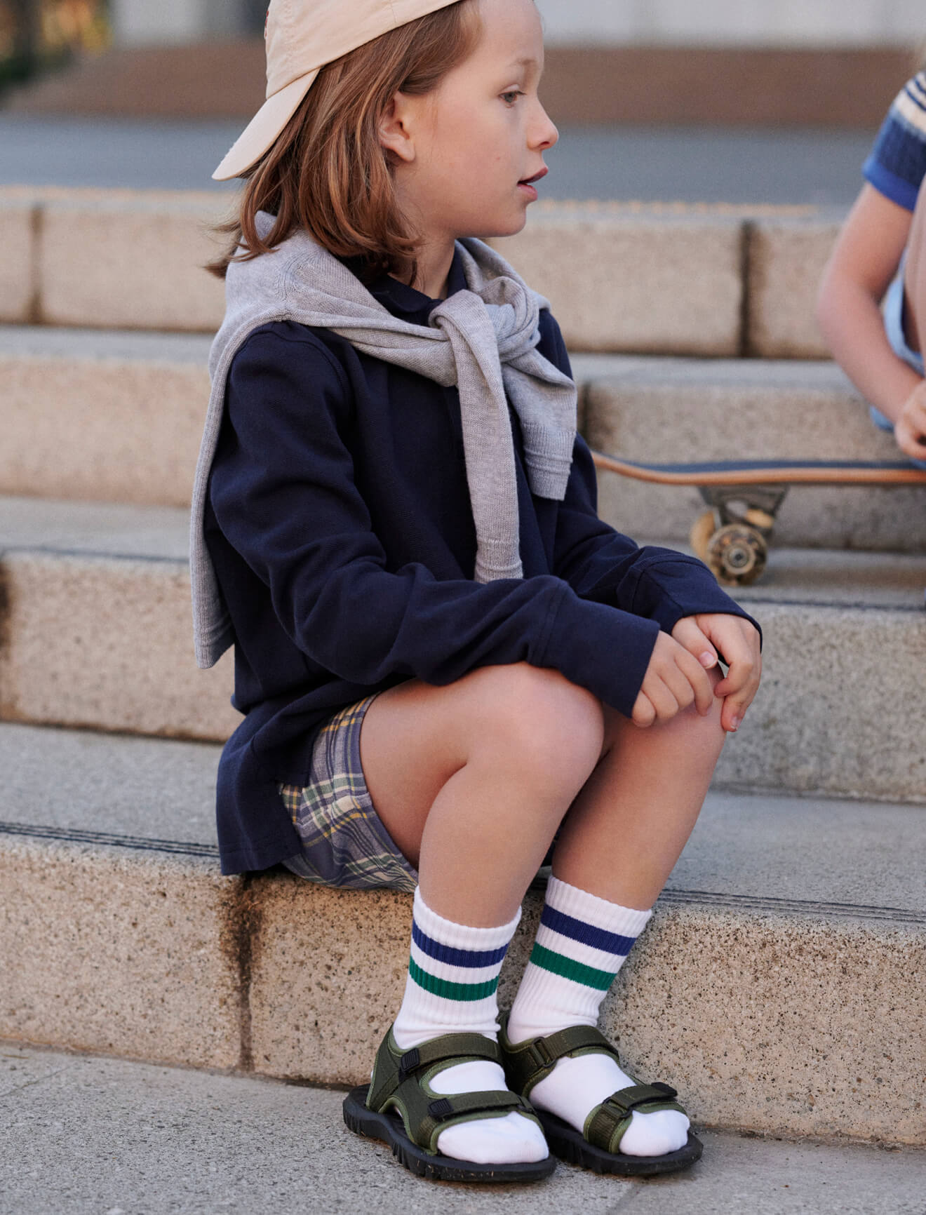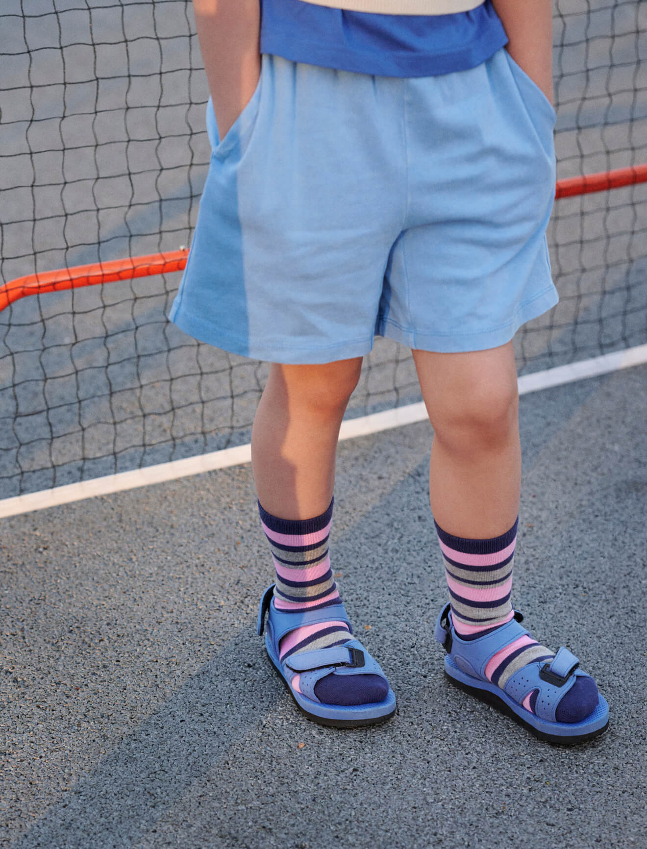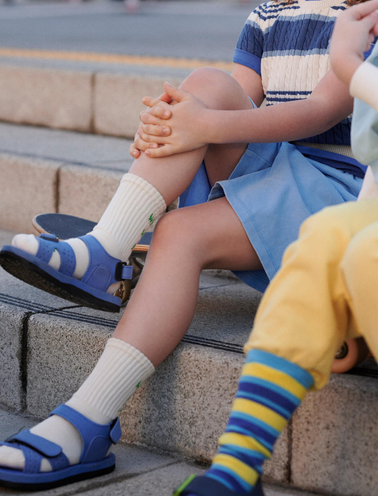 気持ちいい太陽の季節が到来。きらめく陽射しによく似合う、実用性とおしゃれを兼ね備えたサンダルスタイルを思う存分楽しみたいなら、通気性のよいコットン100%ソックスで爽快に。サンダルの汗染みや靴擦れ防止にもひと役。はくだけで気分もあがる明るいムードのポップなソックスを、子どもならではの感性で自由にミックスしてプレイフルな着こなしを謳歌して。