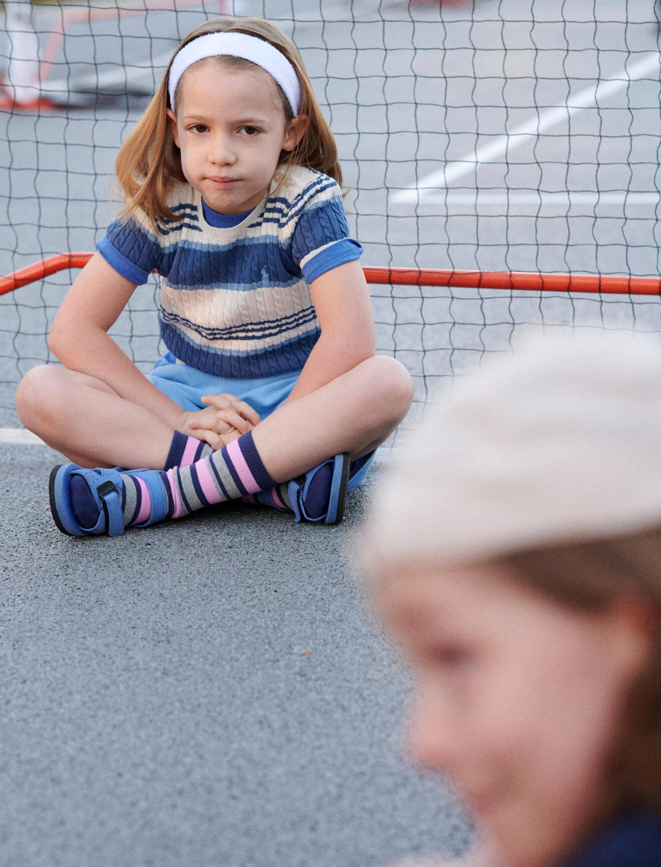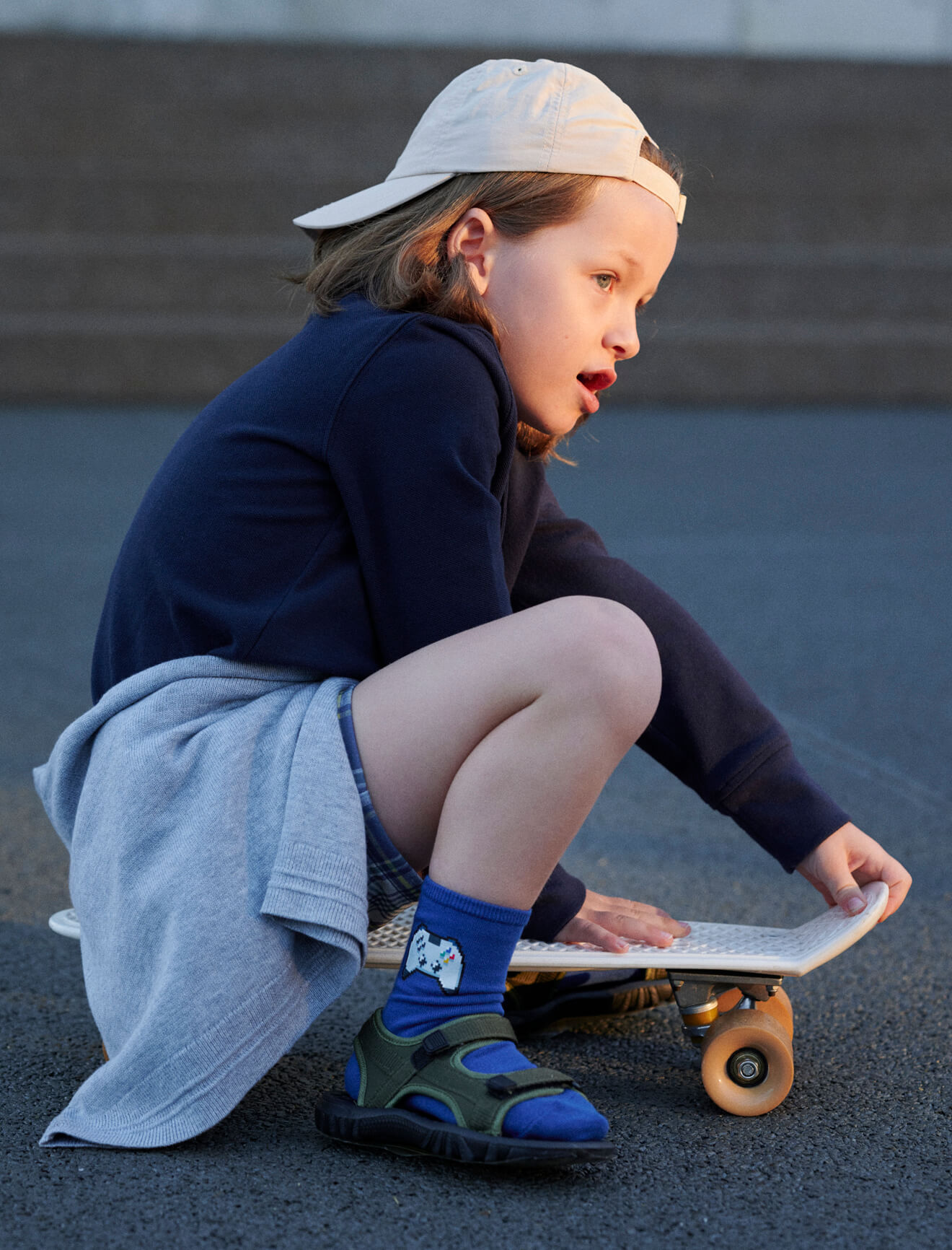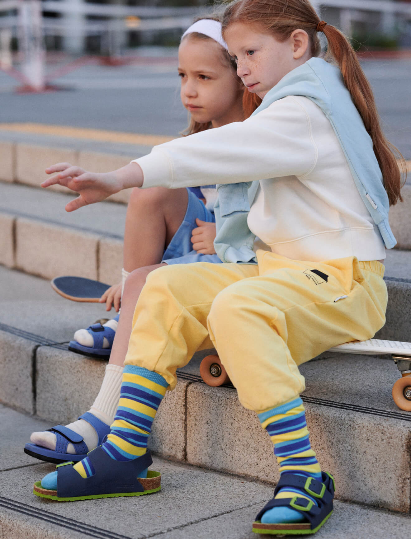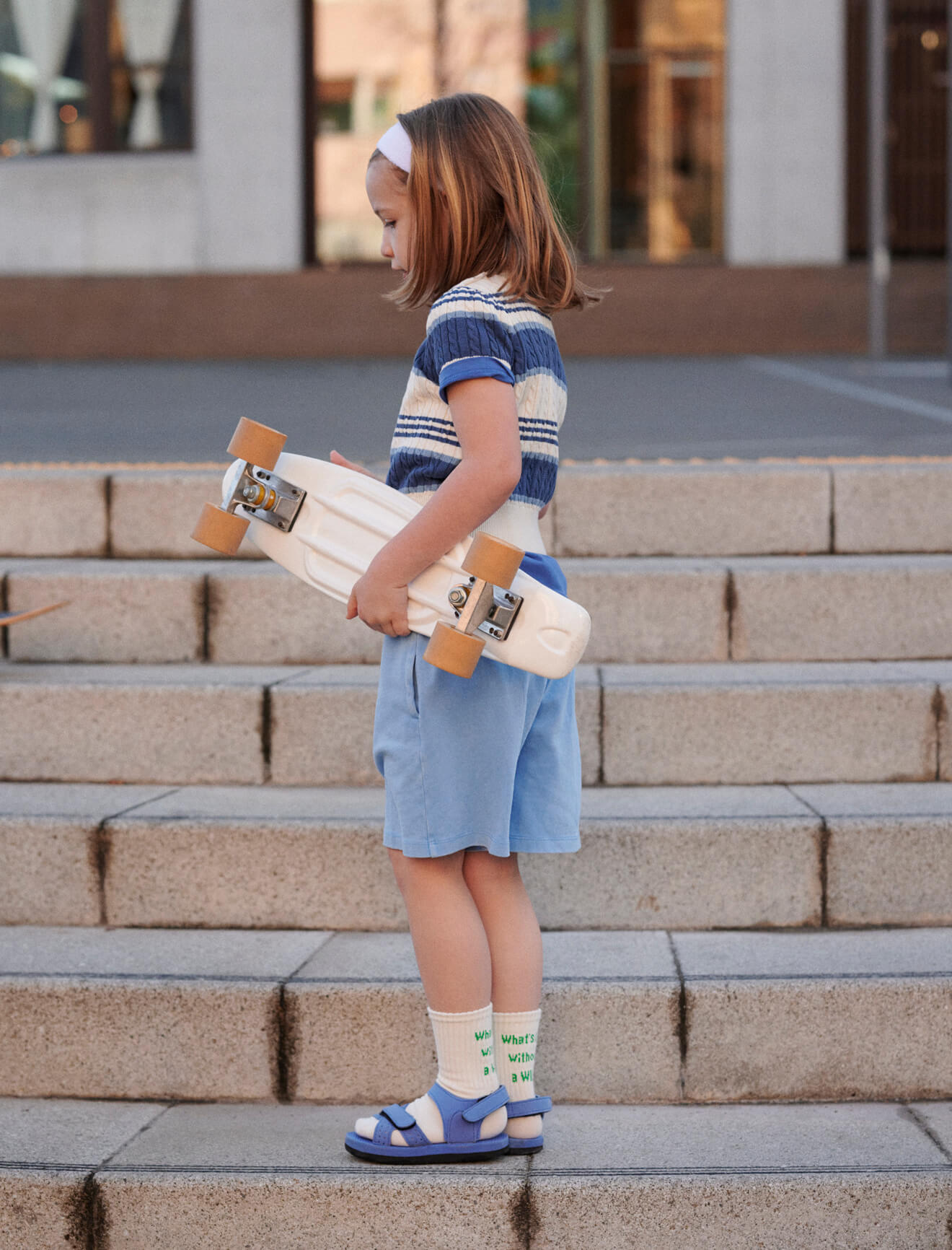 気持ちいい太陽の季節が到来。きらめく陽射しによく似合う、実用性とおしゃれを兼ね備えたサンダルスタイルを思う存分楽しみたいなら、通気性のよいコットン100%ソックスで爽快に。サンダルの汗染みや靴擦れ防止にもひと役。はくだけで気分もあがる明るいムードのポップなソックスを、子どもならではの感性で自由にミックスしてプレイフルな着こなしを謳歌して。