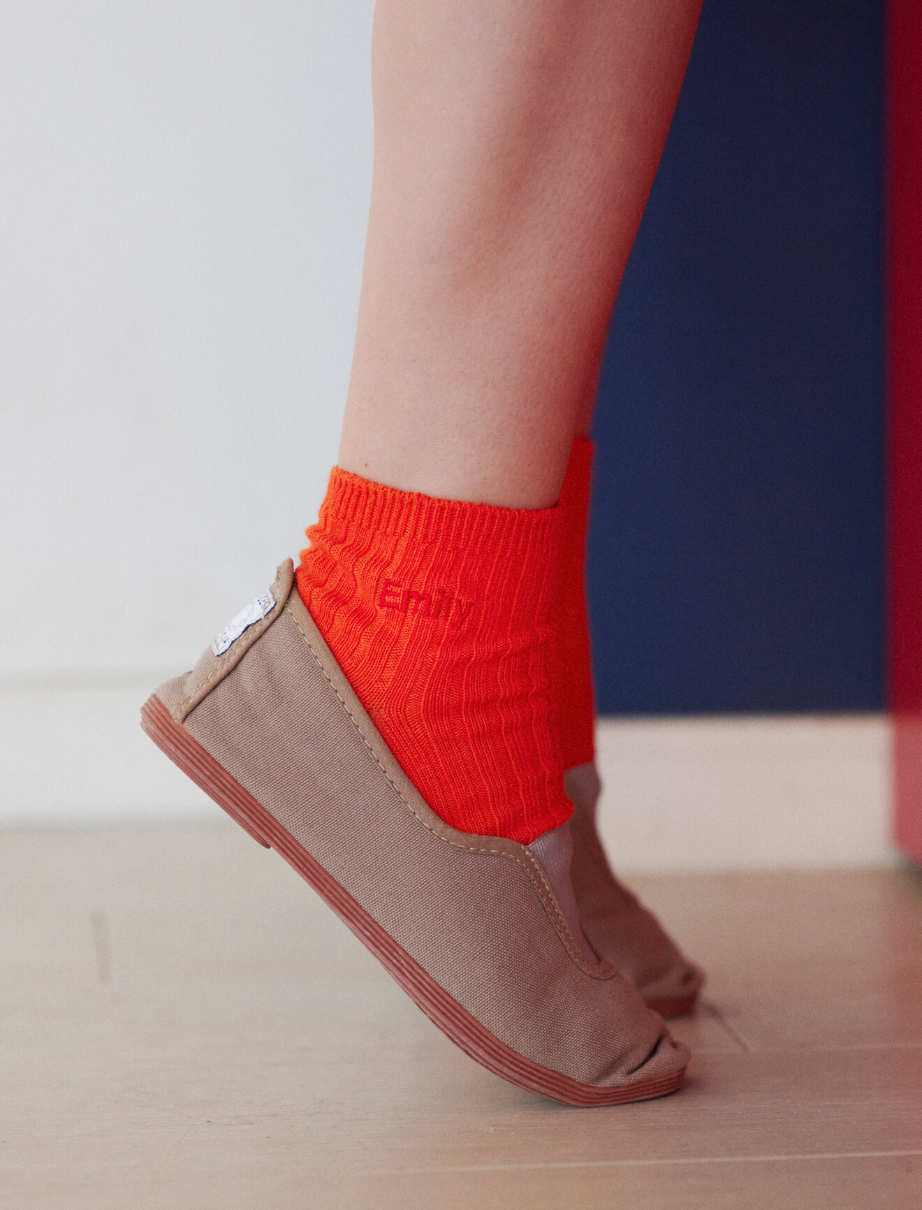 リブショートソックスcol.52オレンジ¥440+カスタム刺繍6文字以内¥220(ともにmaisonpeca/タビオ)