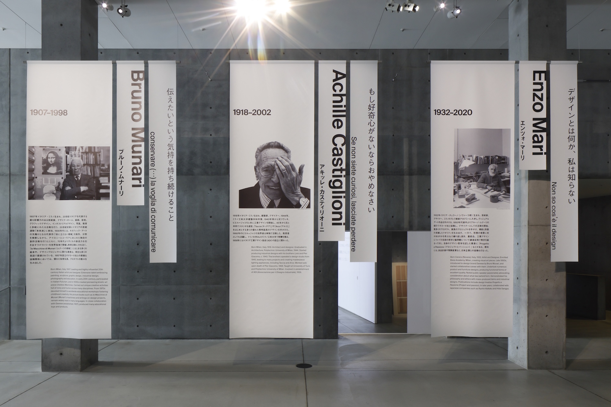 本展は、20世紀を代表する6人のデザイナーを“先生”と捉え、その思想と仕事をあらためて紹介するもの。登場するのは、ブルーノ・ムナーリ、アキッレ・カスティリオーニ、エンツォ・マーリ、ディーター・ラムス、オトル・アイヒャー、マックス・ビル。会場は作家ごとにゆるやかに構成されていて、代表的なプロダクトやグラフィック、貴重な映像やテキストを通して、それぞれの視点や時代背景に触れることができる。
