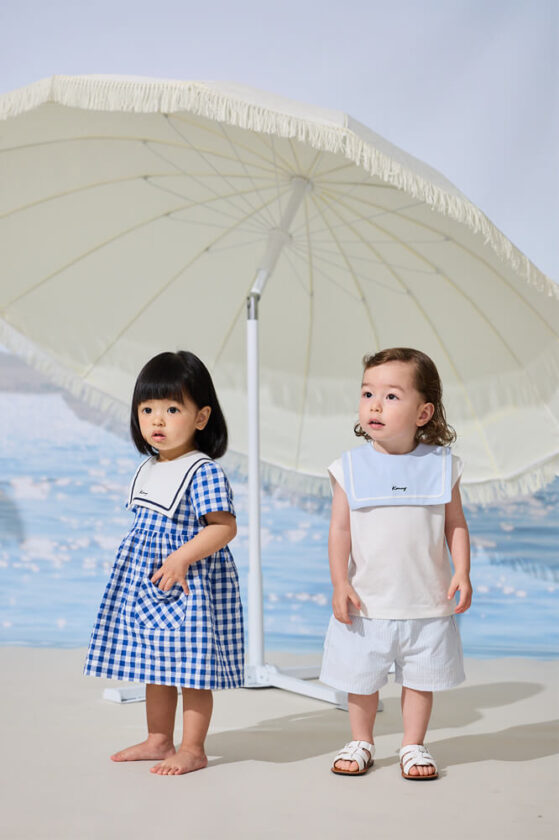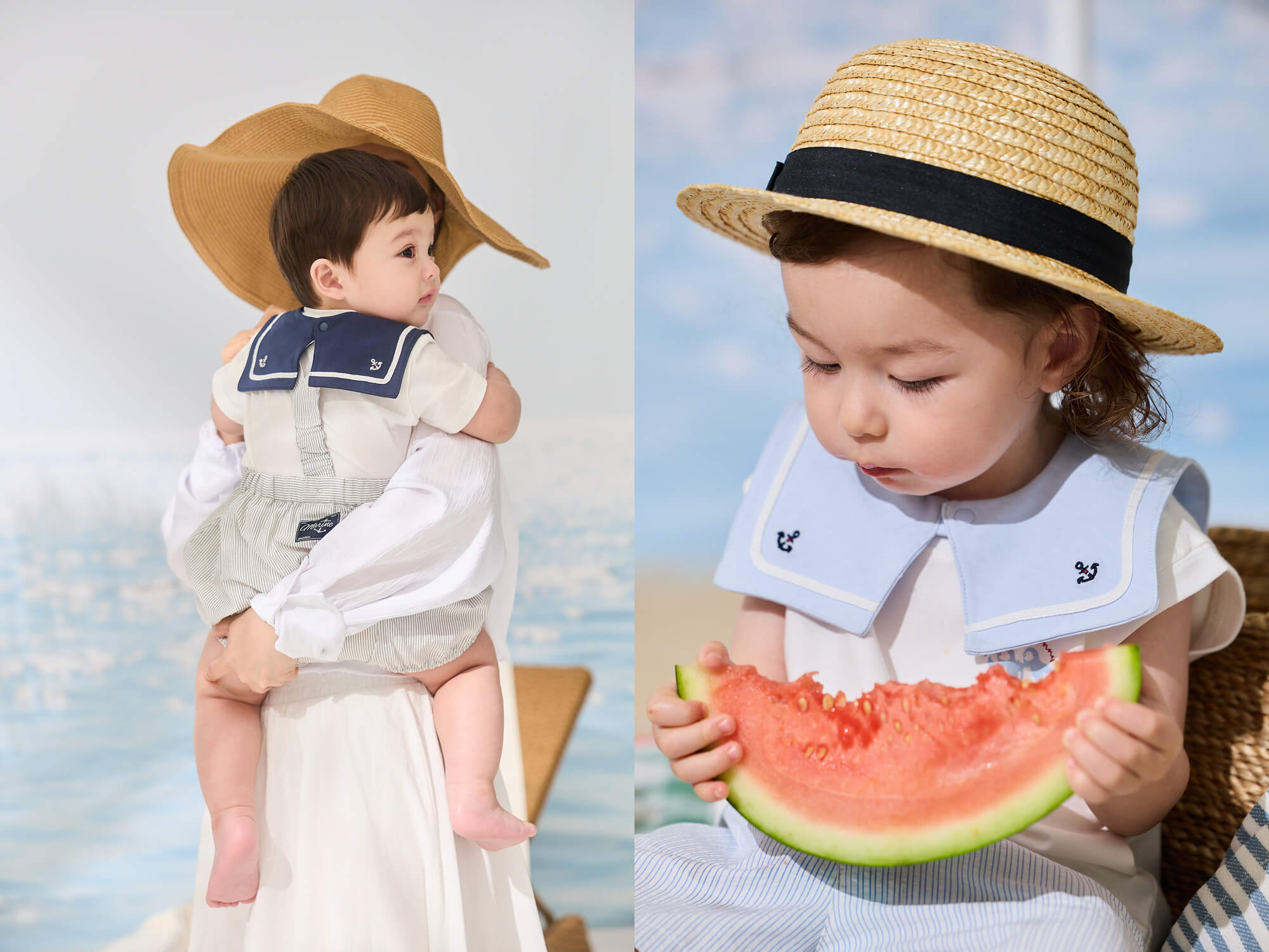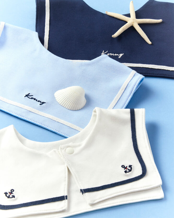 ベビーとの日常にやさしく寄り添いながら、心地よさと機能性を大切にしたアイテムを提案する〈Konny〉から、夏の装いにさりげなくリゾートムードを添えるマリンコレクションが登場。