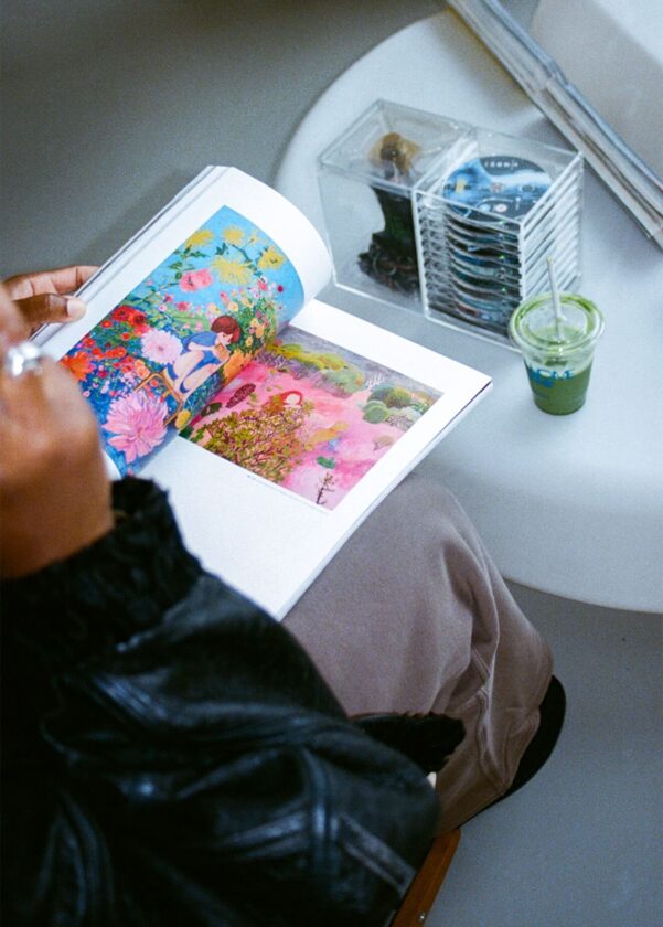今回のお披露目会は、写真や映像を手がけるアーティスト アイボリー・キャンベルの共同キュレーションによって実現したもの。紙の質感を確かめながら雑誌を手に取る人、フラワーが揺れる午後の光、ドリンクを片手に会話を楽しむ来場者たち……。会場には、穏やかで心地よい時間が流れていた。その雰囲気の一部を、写真とともに紹介しよう。