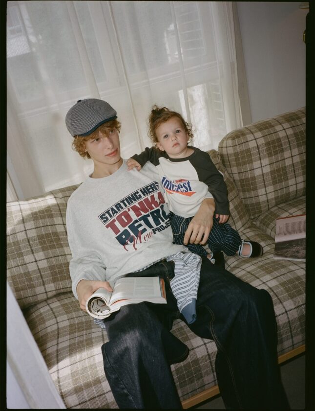 今回のポップアップでは、「House」をテーマに、〈To’nka〉の世界観を詰め込んだ温もりある空間を再現。アメリカンヴィンテージを感じさせるカジュアルな雰囲気のなかで、家族でゆったりとお買い物を満喫できる。1〜3歳のキッズ用から大人用サイズまで展開し、リンクコーデも楽しめるアイテムが揃う。