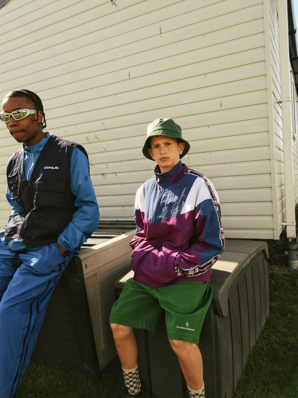 Right: ヴィンテージジャケット(Champion)ショートパンツ ハット(ともにThe Animals Observatory)ソックス スタイリスト私物