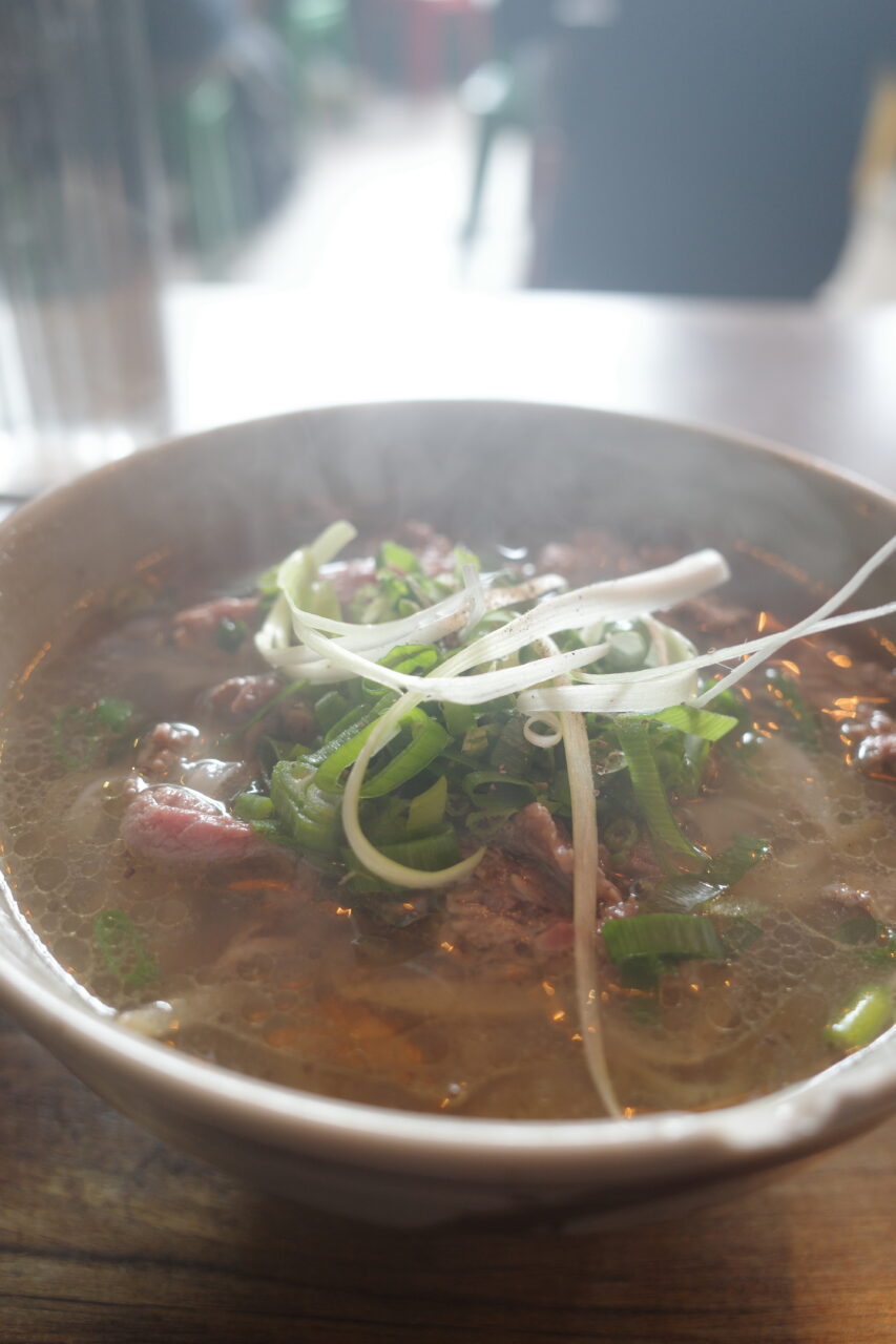 しかし先日、寒の戻りで突然冷え込み、雹まで降ってきて、全身ずぶ濡れになってしまった。震えながら思い出したのは、友人に教えてもらった徒歩5分のフォーの店。ポンヌフ橋からシテ島へ渡って駆け込むと、立ち上る湯気に頬が緩む。中途半端な時間にもかかわらず、店内はほぼ満席で、同じように一人で座る客の姿もちらほら見えるのが心強い。思いがけずありついたフォーの熱いスープが、凍えた身体をゆっくりと芯までほぐしてくれた。食べ終えるのが惜しく思えて、人生で初めてフォーの替え玉を頼んでしまったほどだ。日本に一時帰国するときには、ラーメン屋や蕎麦屋に一人で訪れるのが醍醐味のひとつだが、パリには「おひとりさまフォー」という密かな贅沢があったのだ。店を出る頃には雨も上がり、まだ身体に残る温もりを反芻しながら息子を迎えに戻った。